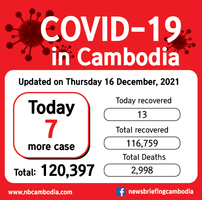 [캄보디아 코로나19 현황] 12월 16일 신규확진자 7명, 격리해제 13명, 일일사망 3명