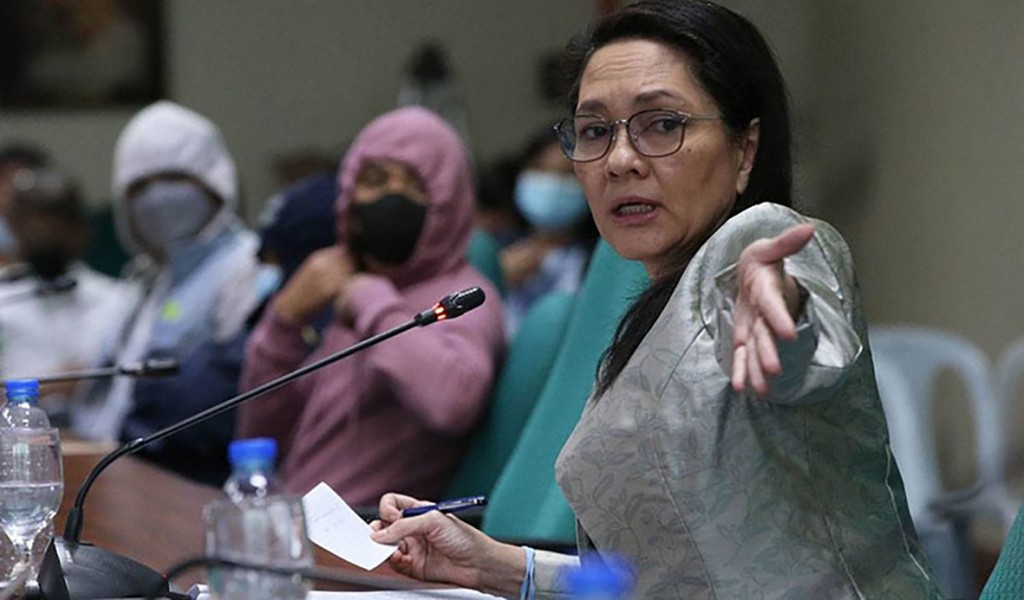 ▲ 지난 1월 25일 열린 ’캄보디아 불법 온라인 도박 및 암호화폐 거래소 필리핀인 강제노역’에 대한 청문회에서 아나 테레시아 리사 혼티베로스 필리핀 상원의원이 엠마 사른 주캄보디아필리핀총영사에게 질문하고 있다.