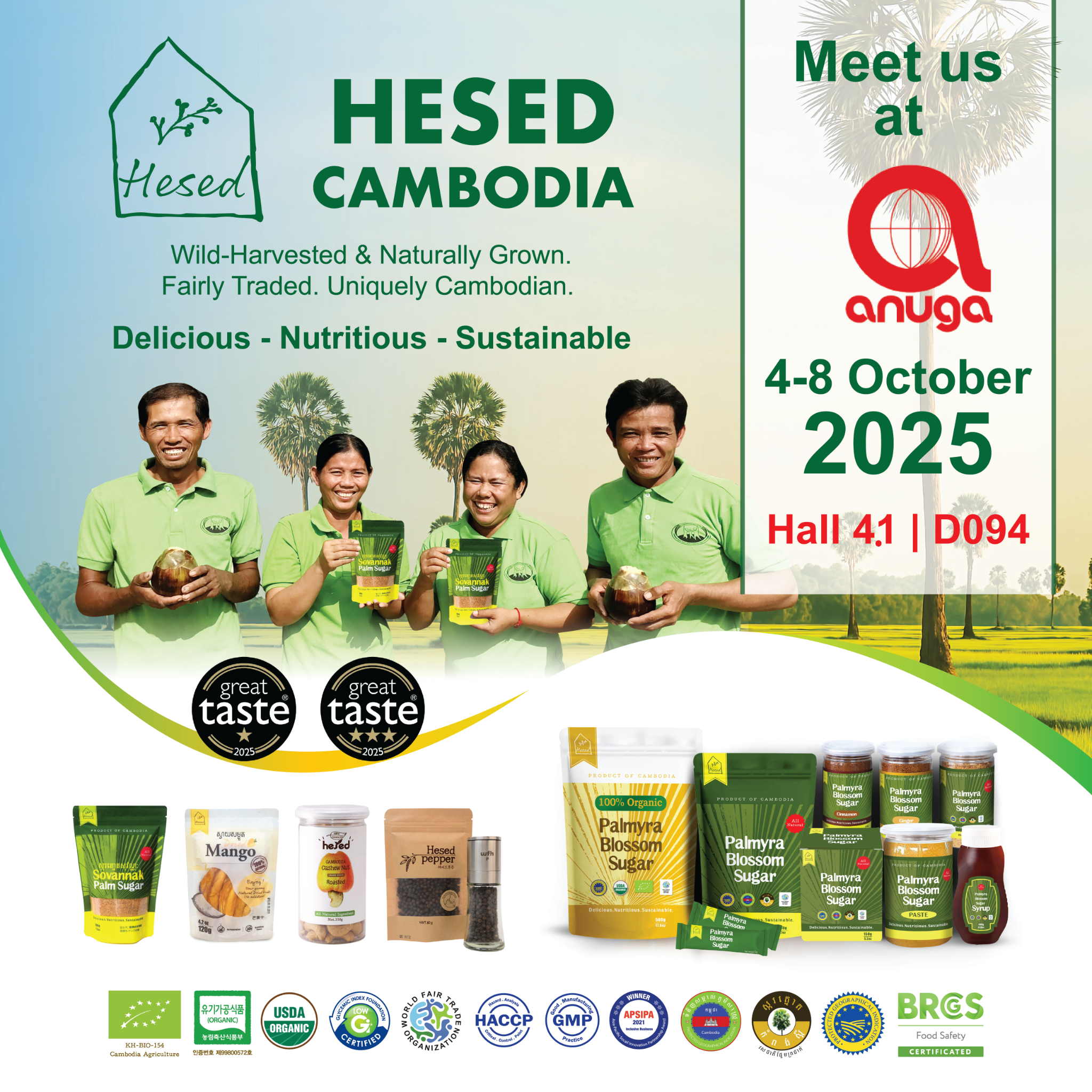 헤세드 캄보디아는 캄보디아 상무부와 함께 참가하며 주요 상품인 팔미라 블러썸 슈거, 캄보디아 로스티드 캐슈넛, 헤세드 건망고, 헤세드 후추를 선보인다. 이번 참가를 통해 캄보디아 농산물 가공품의 우수성을 알리고 유럽 시장 진출에 본격적인 발판을 마련한다는 계획이다.