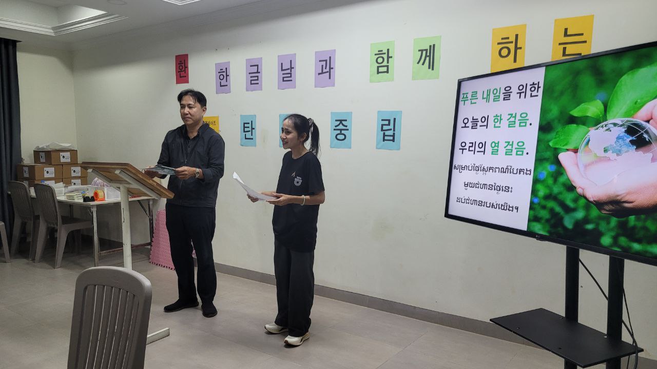 시엠레아프 세종학당은 2022년 개원 이후 꾸준히 한국어 교육과 문화 확산에 힘써왔으며, 이번 한글날 행사를 통해 현지 학습자들에게 ‘한국어를 배우는 즐거움’과 ‘지구를 지키는 실천’을 함께 전하는 특별한 시간을 마련했다.