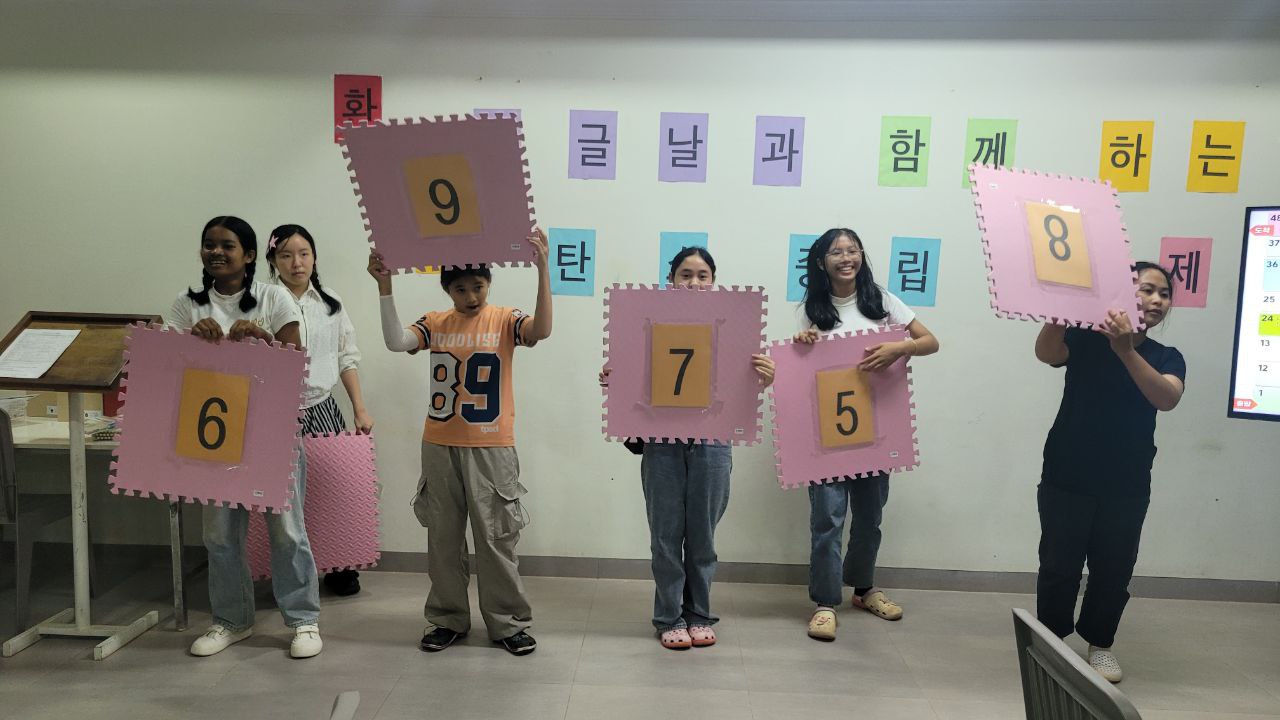 시엠레아프 세종학당(학당장 안병호)은 지난 10월 11일, 제579돌 한글날을 기념하여 2학기 세종학당 수강생을 대상으로 한글과 환경을 주제로 한 문화행사를 개최했다. 이번 행사는 한국어 학습과 더불어 지속가능한 삶의 가치를 공유하기 위해 기획되었으며, 41명의 학당 학습자들이 참여해 성황리에 마무리됐다.