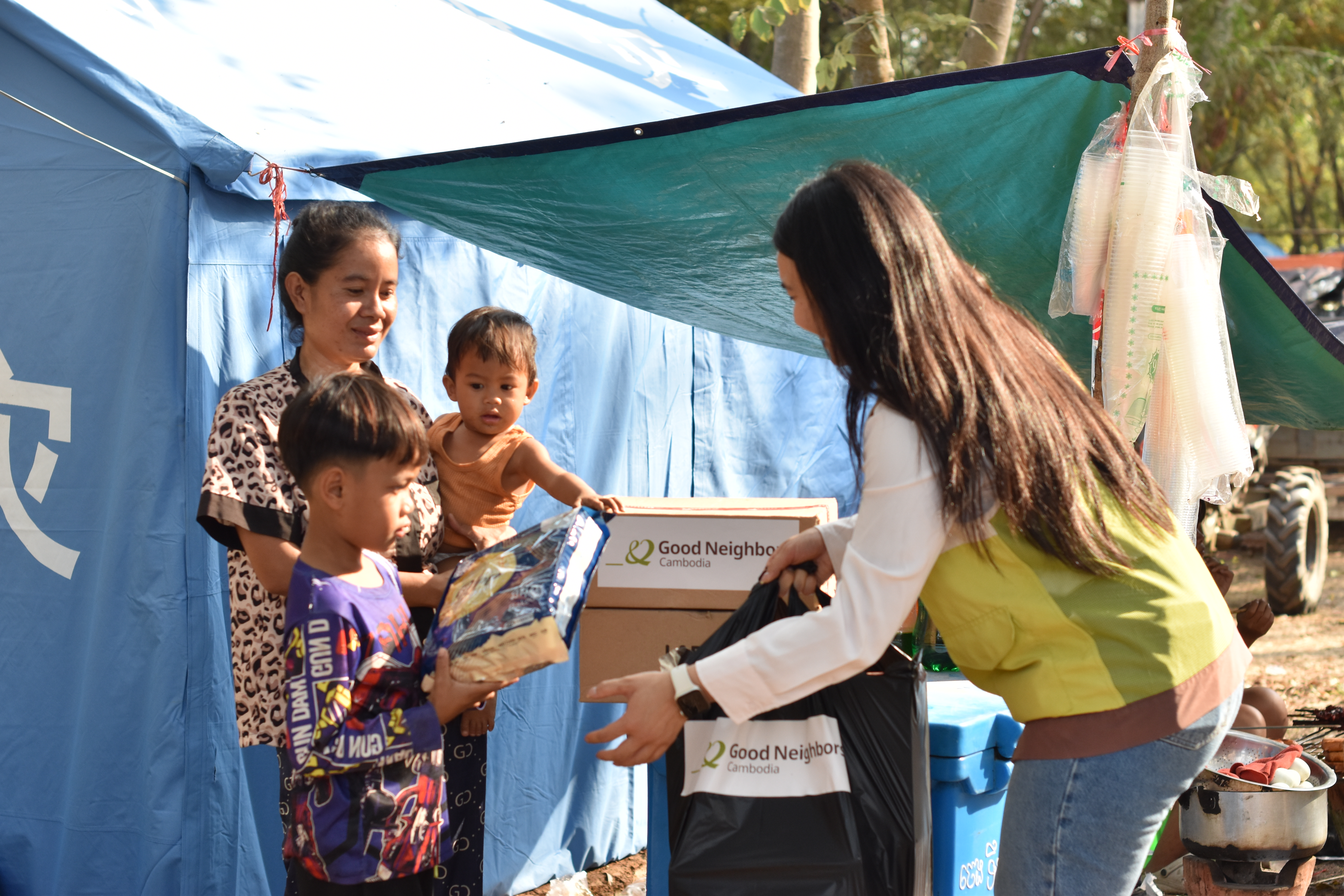 이번 구호 활동은 최근 캄보디아와 태국 간의 국경 분쟁으로 삶의 터전을 잃은 오쯔러우 군 지역 주민들을 돕기 위해 마련됐다. 굿네이버스 캄보디아는 총 10만 1500달러의 예산을 투입해 피난민 2500가구, 약 9500명에게 식량과 식수, 이불, 모기장, 세제 등 필수 생필품을 전달했다.
