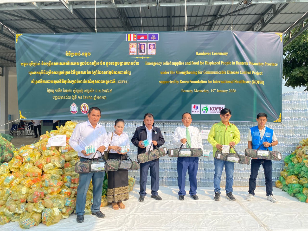 한국국제보건의료재단(KOFIH) 캄보디아 사무소는 최근 발생한 캄보디아-태국 국경 분쟁으로 삶의 터전을 잃은 반띠민쩨이주 피란민들을 위해 긴급 구호 물품을 전달하고, 주 보건국의 감염병 관리를 위한 공중보건 활동을 지원했다.