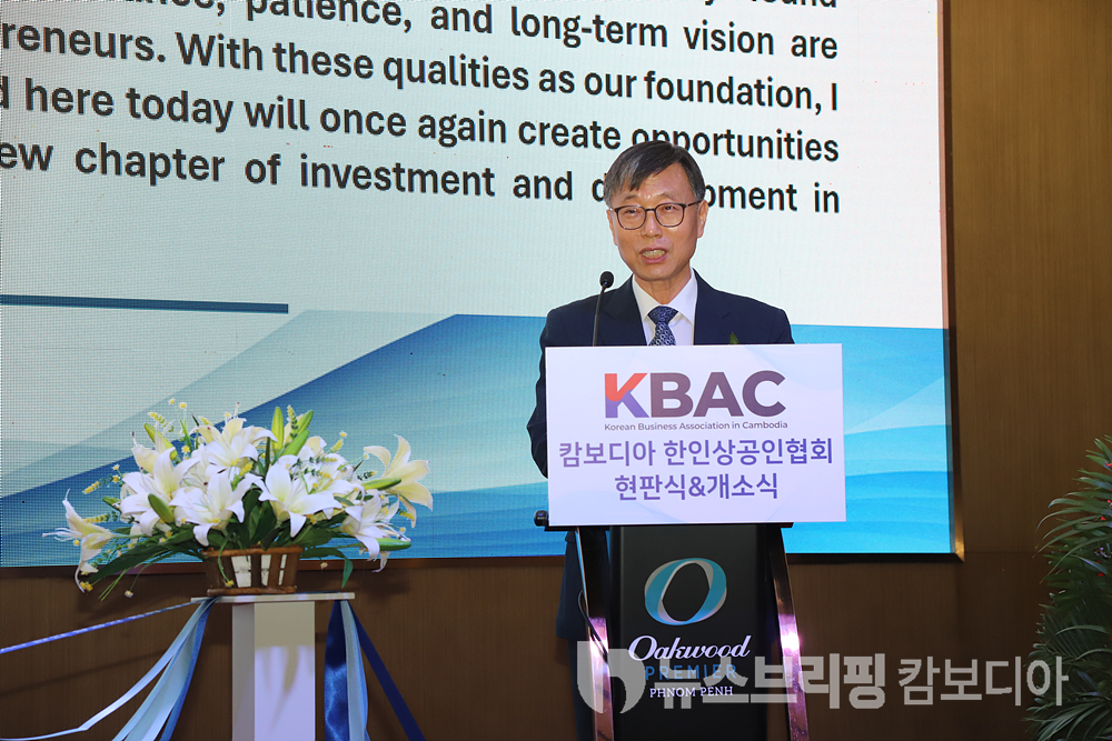이어 축사에 나선 윤하청 코트라 프놈펜무역관장은 “지난해 캄보디아-태국 국경 분쟁과 글로벌 경기 둔화, 각종 대외 변수로 한인 기업들이 적지 않은 어려움을 겪었다”며 “이러한 시기에 KBAC의 출범은 단순한 조직 신설을 넘어 실질적인 지원과 소통을 담당할 중요한 전환점”이라고 평가했다. 그는 “코트라도 한인 기업과 협회의 안정적인 활동을 위해 적극 협력하겠다”고 밝혔다.