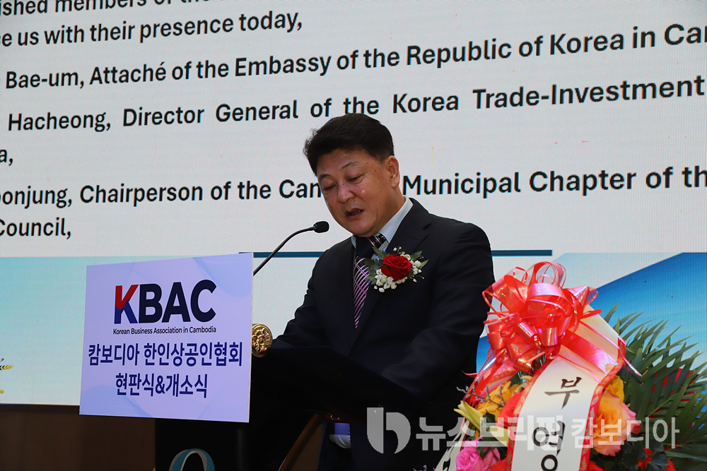 환영사에 나선 홍승균 KBAC 회장은 “오늘 문을 여는 이 공간은 단순한 행정 사무실이 아니라 캄보디아에서 활동하는 한인 기업들을 위한 공동의 기반이자 언제든 소통하고 협력할 수 있는 열린 플랫폼”이라며 “급변하는 시장 정보와 제도 변화에 신속히 대응하고 회원사 간 연대를 강화하는 중심 역할을 수행하겠다”고 밝혔다.