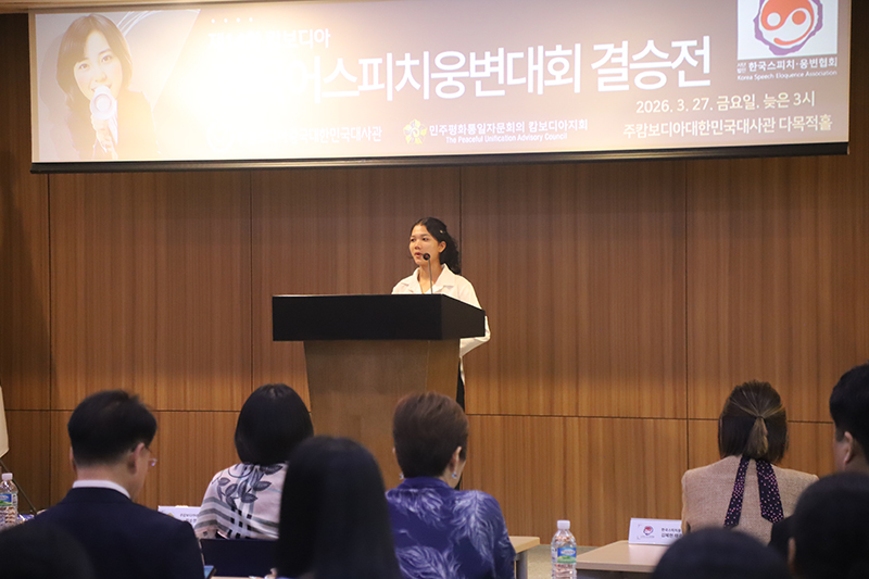 지난 27일 주캄보디아 대한민국 대사관 다목적홀에서 열린‘제14회 캄보디아 한국어 스피치 웅변대회 및 제30회 세계 한국어 웅변대회 캄보디아 대표 선발전’에는 캄보디아 거주 재외동포 60여 명과 한국어를 사랑하는 현지인 75여 명 등 총 135명이 참가해 높은 관심을 보였다. 이번 대회는 사단법인 한국스피치웅변협회 캄보디아 본부와 민주평화통일자문회의 캄보디아지회가 공동 주최하고 주캄보디아 대한민국 대사관이 후원했다.